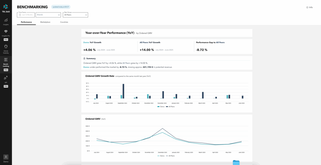 Wir hatten die Gelegenheit, TB.360 und TB.360 PRO mit ausgewählten Partnern zu demonstrieren und das Feedback war überwältigend positiv – besonders in Tradebytes TB.360 PRO Lounge auf dem ECD. Viele lobten die Klarheit, das visuelle Design und den Zeitgewinn über Abteilungen hinweg. Von Marketplace-Managern bis zu BI-Teams hilft TB.360 Marken, ihren Blick zu vereinheitlichen und Entscheidungen zu beschleunigen.