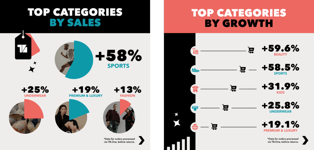 Meanwhile, the fastest-growing categories highlight successful new launches and high consumer demand: Beauty led with +59.6% growth, closely followed by Sports (+58.5%), Kids (+31.9%), Underwear (+25.8%), and Premium & Luxury (+19.1%).